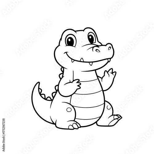 Naklejka premium Friendly Cartoon Crocodile Coloring Page – Black Line Art on White