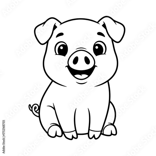 Fototapeta premium Friendly Cartoon Pig Coloring Page – Black Line Art on White