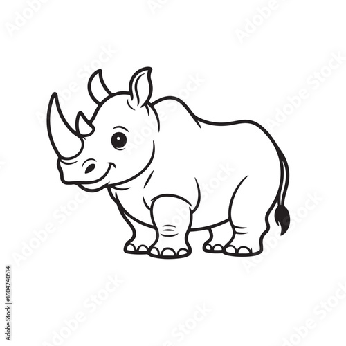 Fototapeta premium Friendly Cartoon Rhino Illustration with Bold Outlines Perfect for Children's Books and Educational Materials Featuring a Cute Animal