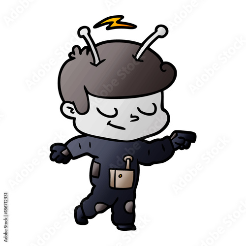 Obraz premium friendly cartoon spaceman pointing