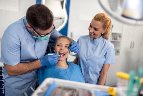 © Sanja_85, Fototapeta premium Friendly Dentists Providing Dental Care to Smiling Patient
