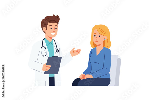 © Tegar Ramadhani, Fototapeta premium Friendly Doctor Consults With Worried Female Patient in Medical Office