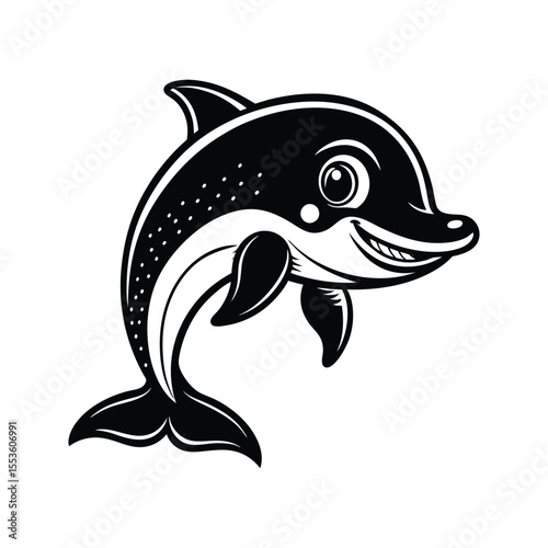 Fototapeta premium Friendly dolphin character silhouette isolated on white background