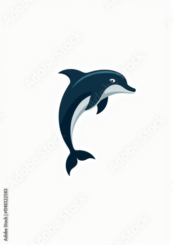 © Mikhail, Fototapeta premium Friendly Dolphin Swimming in the Ocean, Cartoon Wildlife Design on White Background