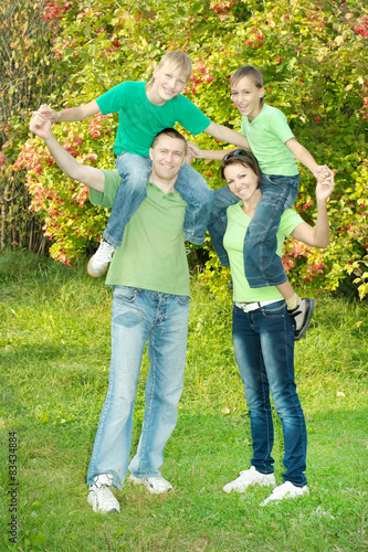 © aletia2011, Fototapeta premium friendly family in green shirts