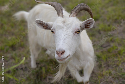 Obraz premium Friendly goat standing on a field