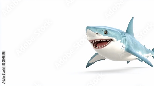 © ngamaz, Obraz premium Friendly great white shark swims, smiling