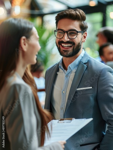 © vefimov, Fototapeta premium Friendly interaction in office setting