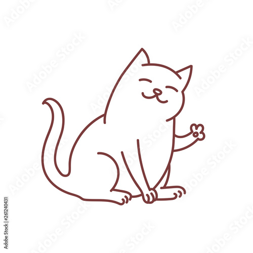 © S E P A R I S A, Fototapeta premium Friendly kitty waves paw and says hello