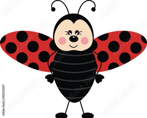 © soniagoncalves, Obraz premium Friendly ladybug standing isolated on white
