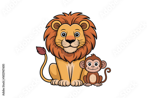 Fototapeta premium Friendly lion and monkey animals cartoon