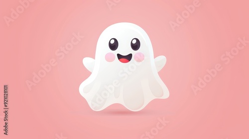 Obraz premium Friendly Minimalist Cute Ghost with Soft Hues - Simple and Sweet Design for...