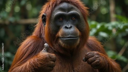 Naklejka premium Friendly orangutan making a thumbs-up.