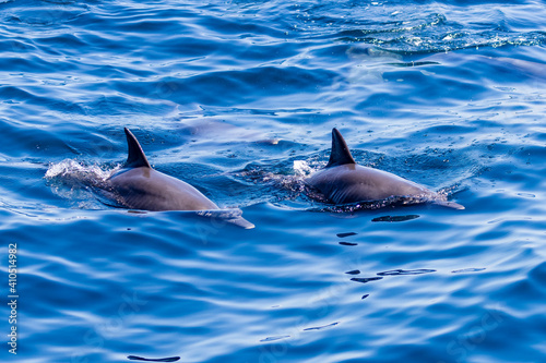 Obraz premium Friendly pod of Common Dolphins on the surface of a tropical ocean