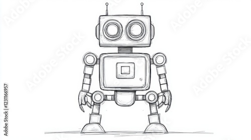 Fototapeta premium Friendly Sketch Robot with Big Eyes and Clunky Design