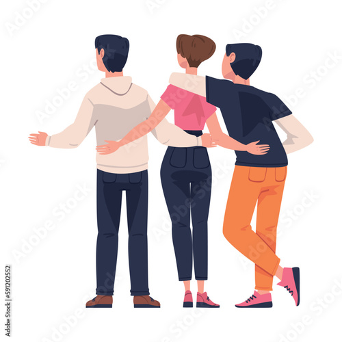 Fototapeta premium Friends from Behind Hugging and Standing Together Vector Illustration