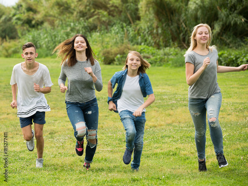 © JackF, Fototapeta premium Friends having fun and running in park