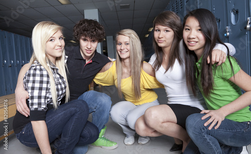 © Louis-Paul Photo, Obraz premium Friends posing in a cloakroom. Nice portrait.