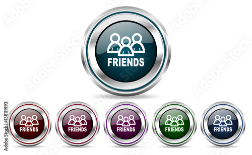 Obraz premium Friends silver metallic web set of vector icons isolated on white background in eps 10.