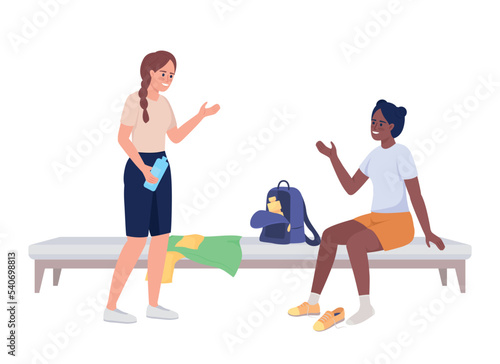 © IMG visuals characte, Naklejka premium Friends talking in locker room semi flat color vector characters. Editable figures. Full body people on white. Physical activity simple cartoon style illustration for web graphic design and animation