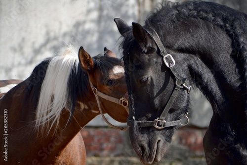 © Дина Попова, Obraz premium Friesian horse playing with another horse
