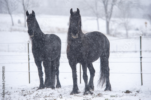 Fototapeta premium Friesian Horses in snow