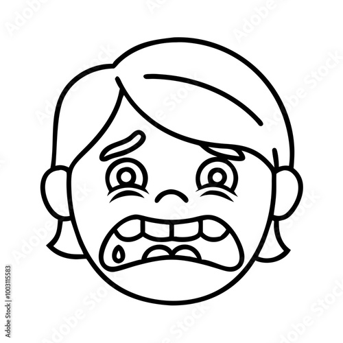 © Kiss, Obraz premium Frightened Child Expression Fearful Face Vector Illustration