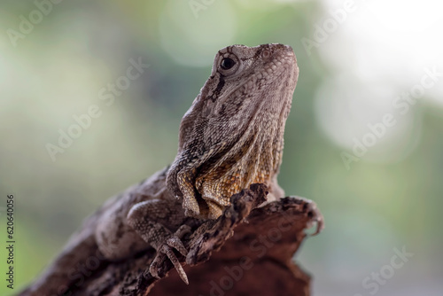 © DS light photography, Obraz premium Frilled lizard sitting on a tree branch