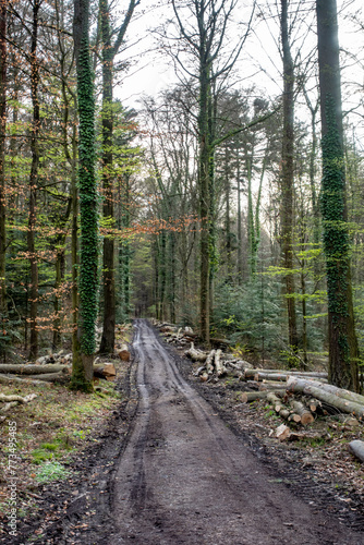 © focus finder, Obraz premium Frisch gefällte Bäume im Mischwald