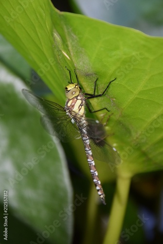 © Antje, Fototapeta premium Frisch geschlüpfte Riesenlibelle auf einem Seerosenblatt
