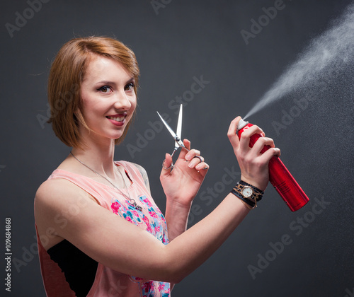 © conorcrowe, Obraz premium Friseurin schneidet Haare
