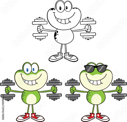 Obraz premium Frog Cartoon Mascot Character 6 Collection Set