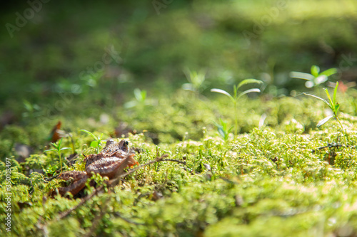 Obraz premium frog in a swamp in green moss