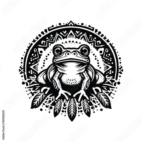 © Cici, Fototapeta premium frog in bohemian black and white silhouette illustration -