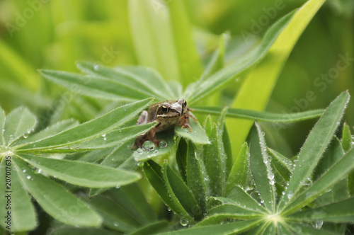 © Victor Lazarev, Fototapeta premium Frog in garden after rain in the evening