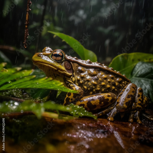 Fototapeta premium Frog in green nature. Illustration AI Generative