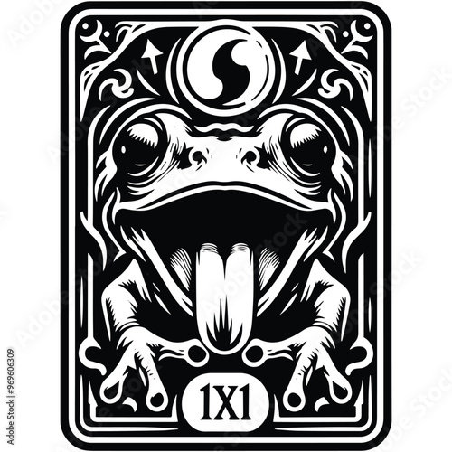 © Cici, Obraz premium frog in Tarot card black and white silhouette illustration -