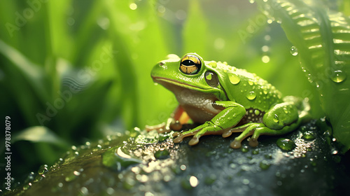 © Go-Tai STUDIO, Naklejka premium frog on a leaf