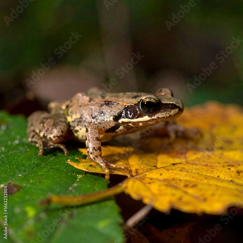 © zahraa, Obraz premium Frog on Autumn Leaf in Forest