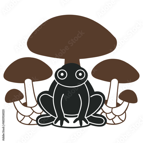 © Dipok, Obraz premium Frog on mushroom vector art illustration