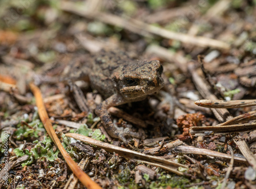 © Artenex, Naklejka premium Frog on the sand covered with spruce needles