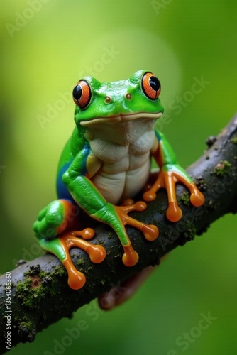 © Prayoon, Fototapeta premium Frog perched on a tree branch, branch, foliage
