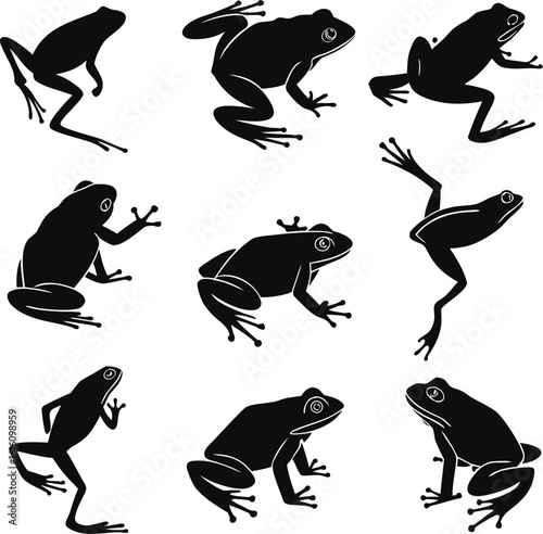 © nillgraph20, Obraz premium Frog silhouette bundle set vector with editable white background