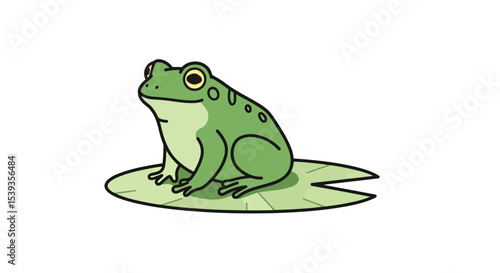 © Lentera, Naklejka premium Frog sitting on a lily pad in pond