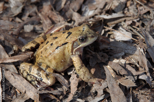© Volodymyr Tsukh, Naklejka premium Frog sitting on fallen leaves