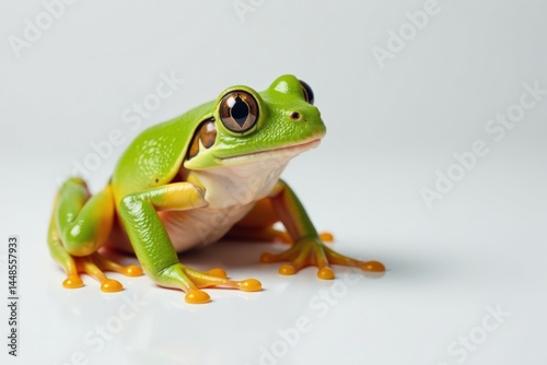 © Prayad, Obraz premium Frog sitting on white flat surface, surface, flat, peaceful