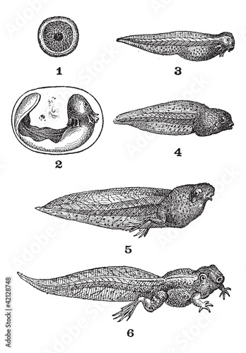 © Morphart, Obraz premium Frog tadpoles, vintage engraving.
