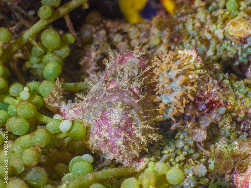 © Mayumi.K.Photography, Fototapeta premium Frogfish on sea grapes (Mergui archipelago, Myanmar)