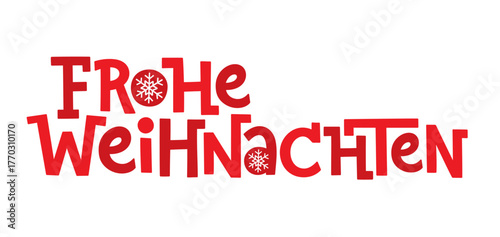 Fototapeta premium FROHE WEIHNACHTEN (HAPPY CHRISTMAS in German) red vector hand lettering banner with snowflake motif