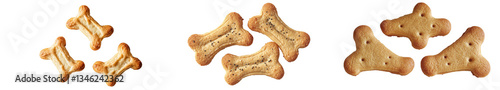 © Zaleman, Fototapeta premium From a top view, a serving of dog food molded into the shape of a bone is shown against a plain white background